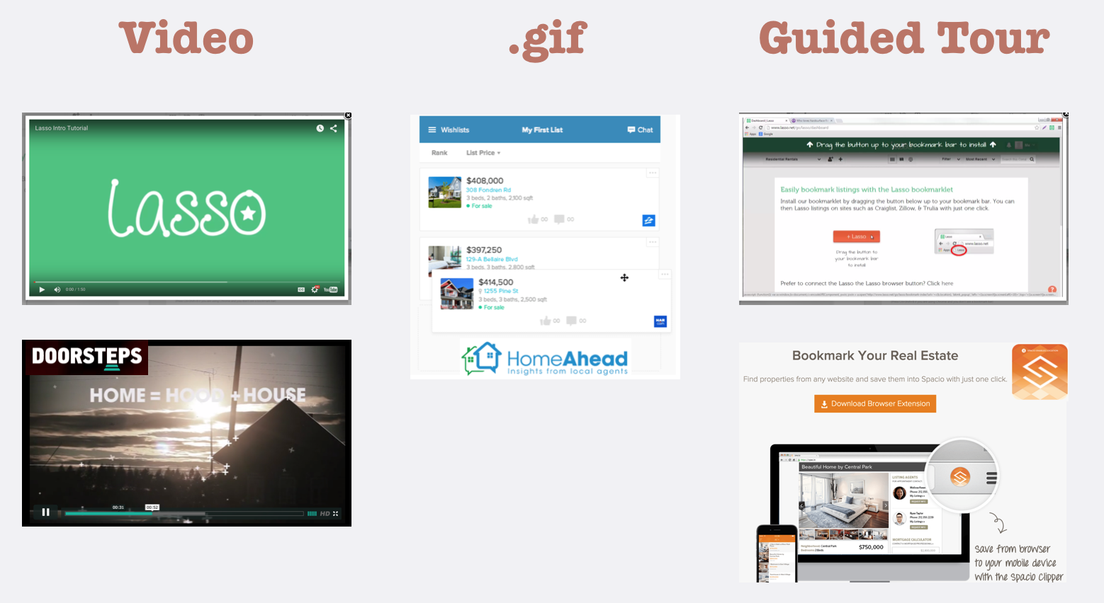 I did a competitive analysis to determine how other sites explained their features to new users. Common methods were embedded video tutorials, animations, and guided overlays.
